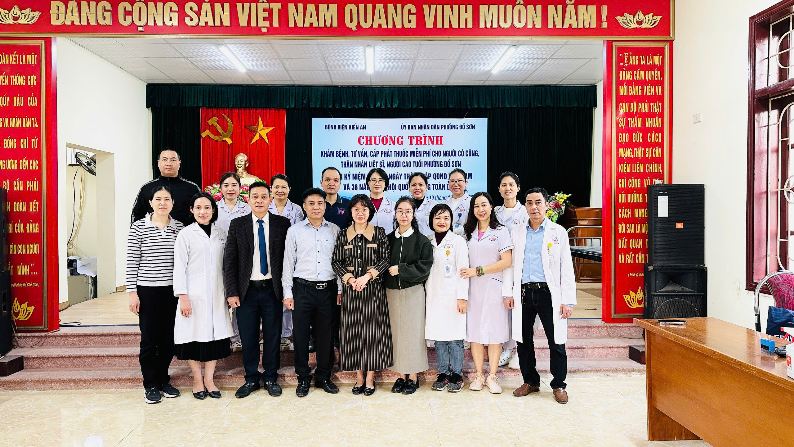 Ủy ban nhân dân phường trân trọng ghi nhận và bày tỏ lời cảm ơn sâu sắc tới Ban Giám đốc Bệnh viện Kiến An, cùng toàn thể đội ngũ y bác sĩ, nhân viên y tế đã quan tâm, phối hợp, tạo điều kiện và dành nhiều thời gian, công sức, chuyên môn để chương trình được tổ chức thành công, an toàn, hiệu quả. Sự tận tụy, trách nhiệm và tinh thần vì người bệnh của các y bác sĩ đã để lại tình cảm tốt đẹp, sự tin tưởng và xúc động trong lòng Nhân dân.